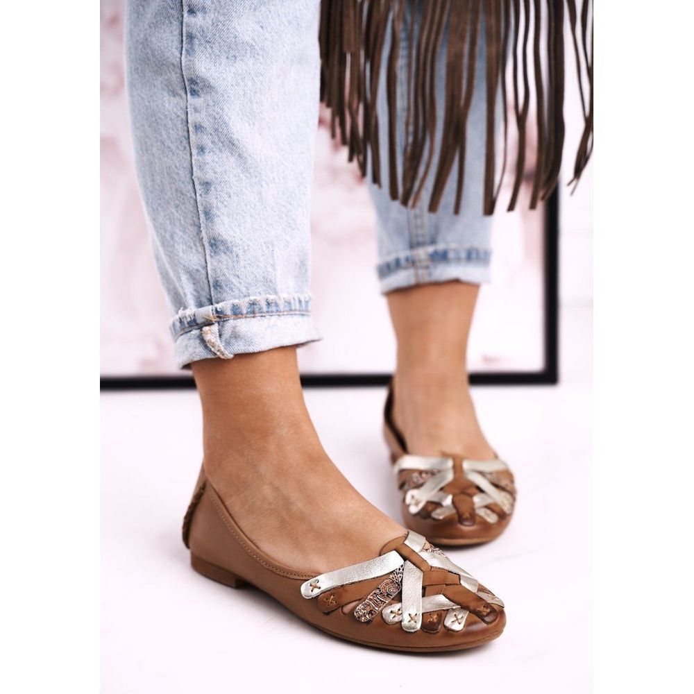 Detalhes: Bailarinas de couro feminino Maciejka vermelho 01358 marrom
