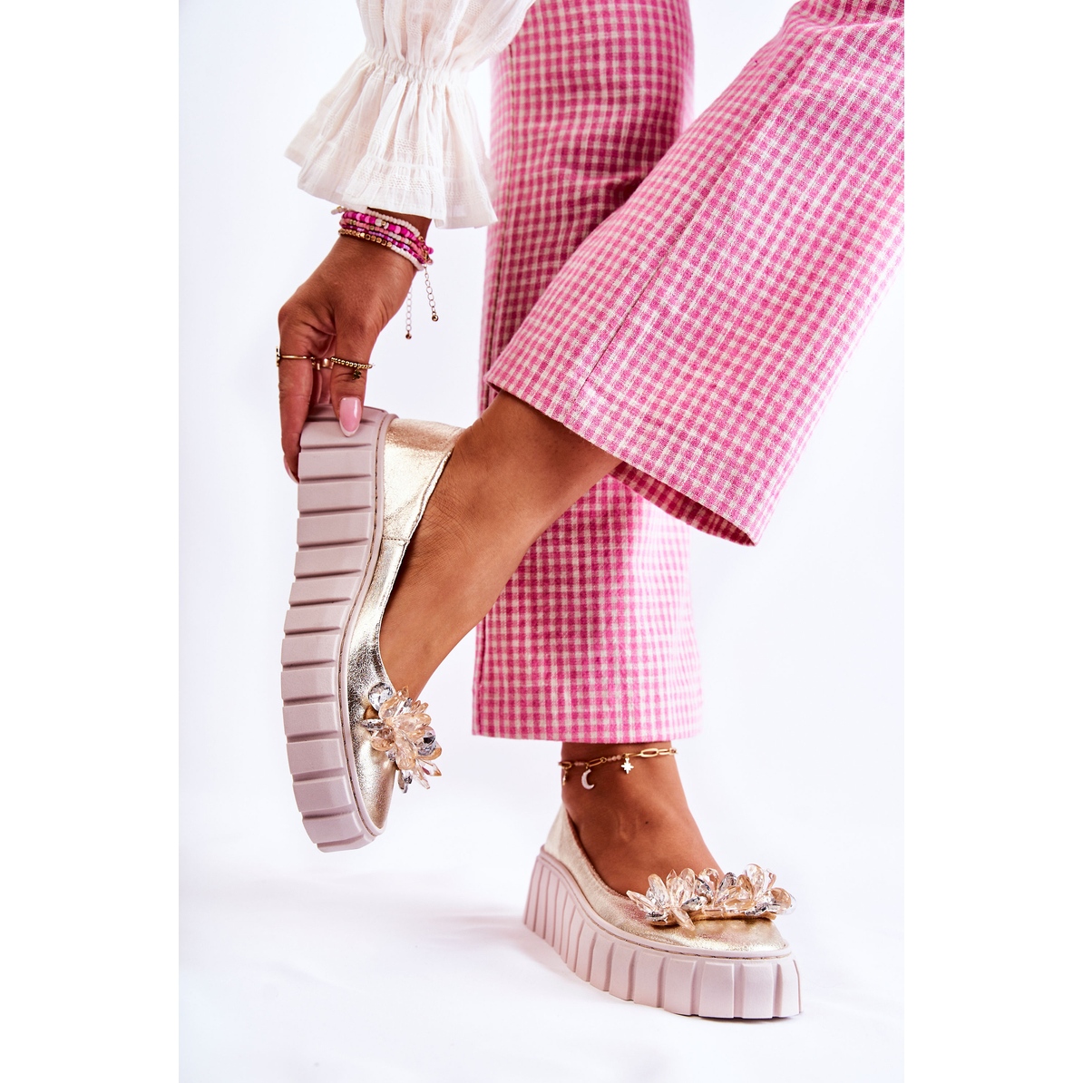 PA2 PA2 Bailarinas de Couro na Plataforma com Ornamento Ladette Dourado