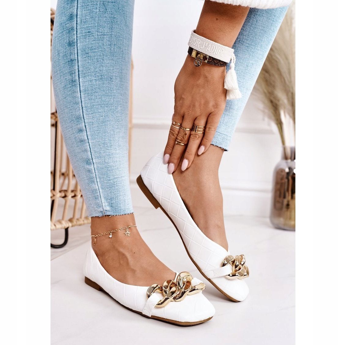 Detalhes: PS1 Bailarinas elegantes acolchoadas com corrente White Coco branco