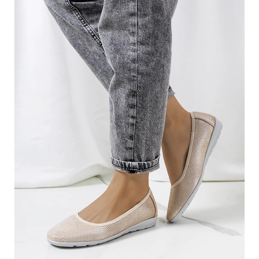 Ballerinas de couro bege elmas - um brilho sutil e conforto todos os dias