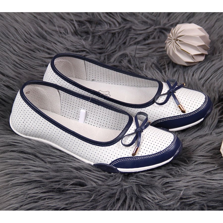 Ballerinas feminina Couro aberto Evento branco - calçados leves, elegantes e confortáveis para dias mais quentes. Feito de couro natural com uma textura externa de trabalho aberto, que fornece excelente ventilação, ideal para estilizações diárias e saídas de verão. Sapatos de conforto com uma inserção de couro macia garante conforto ao longo do dia - perfeito para trabalhar, passear e viajar.