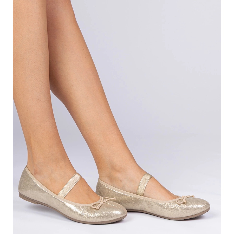 Inna marka Bailarinas femininas douradas com um arco em uma faixa elástica dourado