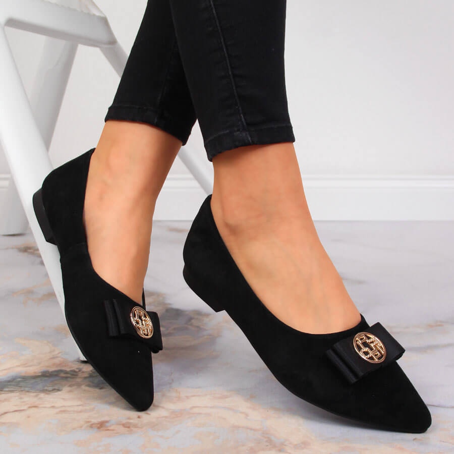 Detalhes: Bailarinas femininas em couro com pontiagudo Filippo preto