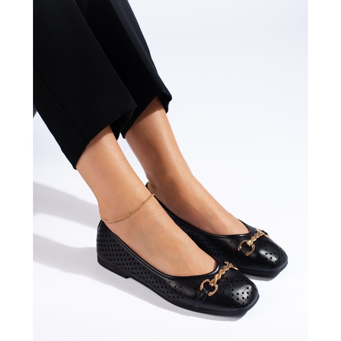 Inna marka Bailarinas femininas pretas vazadas com corrente Shelovet preto