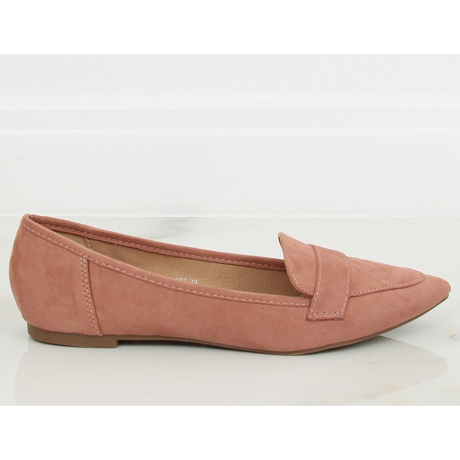 Ballerinas em 302 rosa-gat rosa, camurça, elegante e muito feminina. Um modelo com um nariz delicado e alongado, feito de couro ecológico de camurça, que sutilmente diminui o pé. Uma sola plana e uma palmeira de couro ecológico e macio garantem o conforto de usar todos os dias, e o corte clássico funcionará para estilizações casuais e mais elegantes.