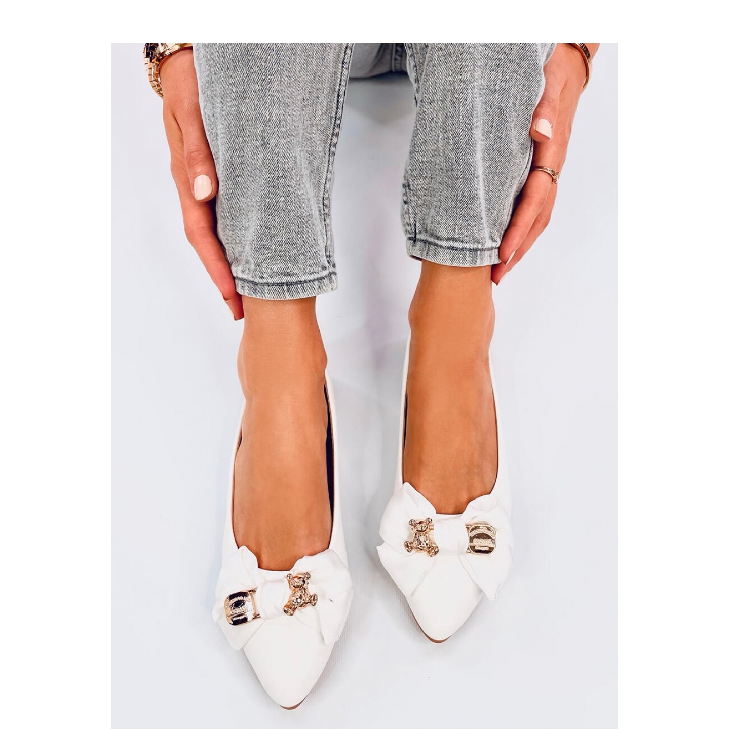 Descubra a elegância e o conforto extraordinários em bailarinas com um urso branco branco, ideal para todas as mulheres que desejam combinar estilo com conforto. Essas bailarinas bem torneadas deleitam com seu design minimalista, suplementado com um belo laço de cetim, decorado com um alfinete de segurança dourado e um urso encantador - detalhes que lhes dão um personagem único.