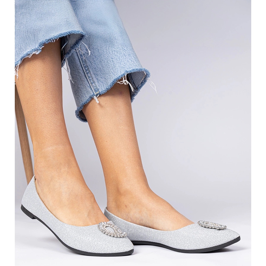 Ballerinas de glitter feminino de prata com zircões são um must-have no guarda-roupa de todas as mulheres elegantes. O modelo GO-209 combina estilo, conforto e detalhes únicos que chamam a atenção. Feito de tecido de alta qualidade, essas bailarinas na cor prateada refletem maravilhosamente a luz, o que fornece um brilho incomparável de qualquer estilização.