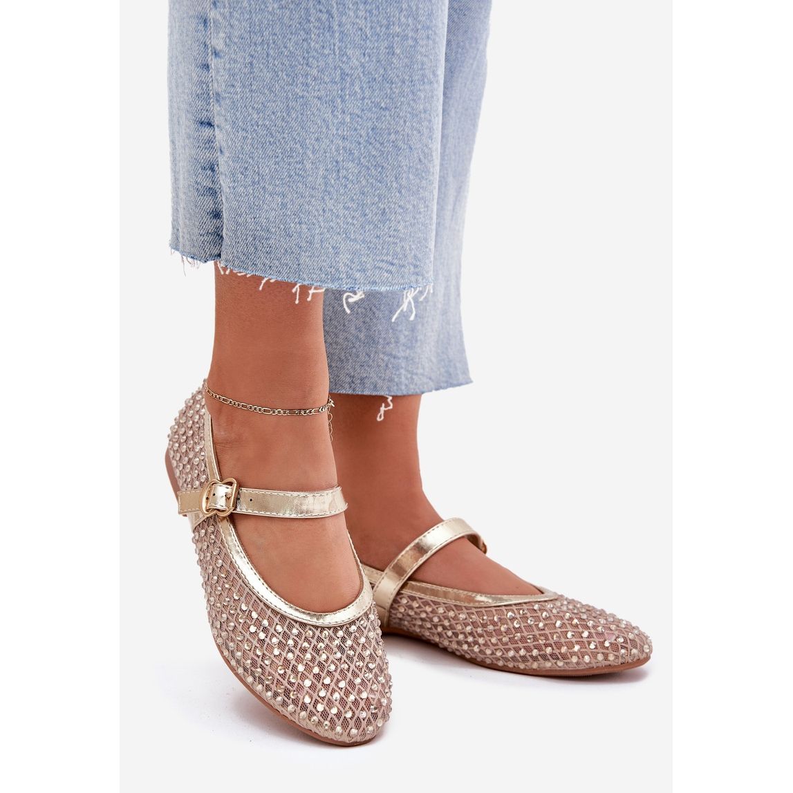 Ballerinas femininas decoradas com cinto e fivela em cor dourada é uma proposta ideal para mulheres que valorizam a elegância e o conforto. Seu design sutil com um nariz arredondado lhes dá delicadeza e, além disso, um cinto com uma fivela no meio do pé não apenas fornece um ajuste perfeito, mas também se torna um sotaque decorativo eficaz.