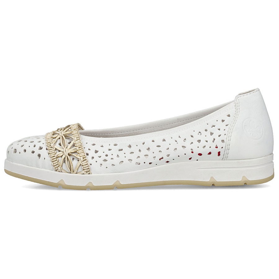 Rieker Ballerinas femininas Openwork confortável White Rieker L3062-80 branco