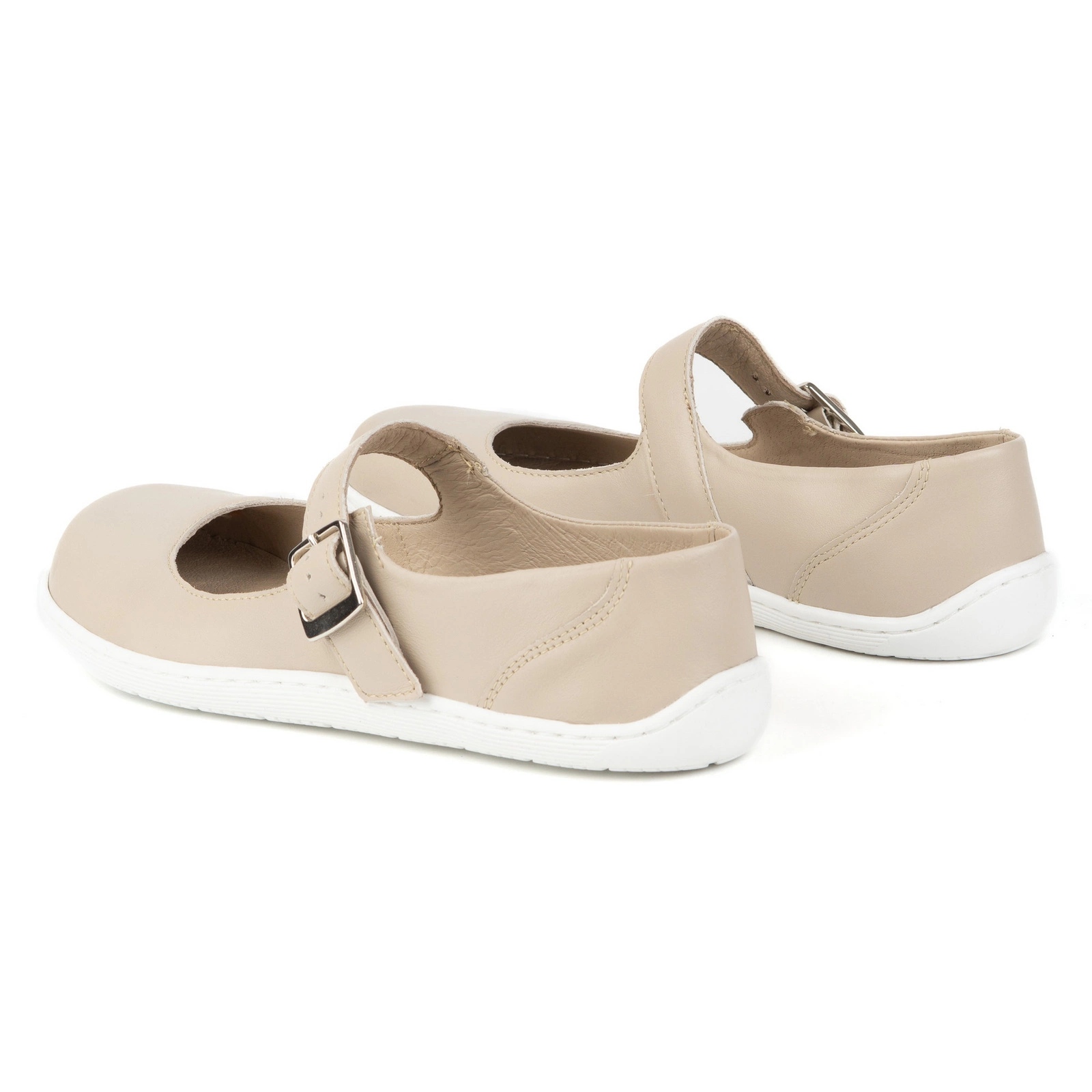 Detalhes: Barefoot Women's Ballerinas Olivier 1286 - Sapatos de couro com fivela para estilizações todos os dias e elegantes bege