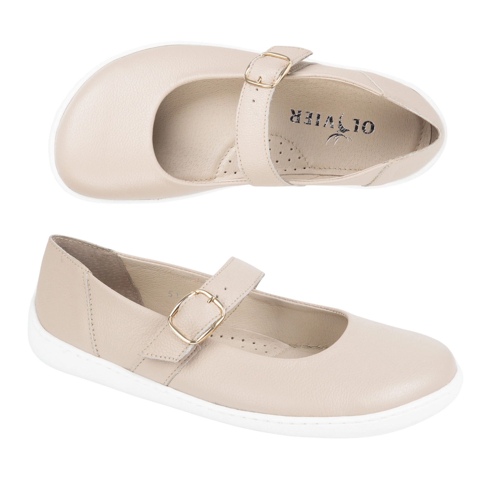 Olivier Barefoot Women's Ballerinas Olivier 1770pol Sapatos de couro com fivela bege