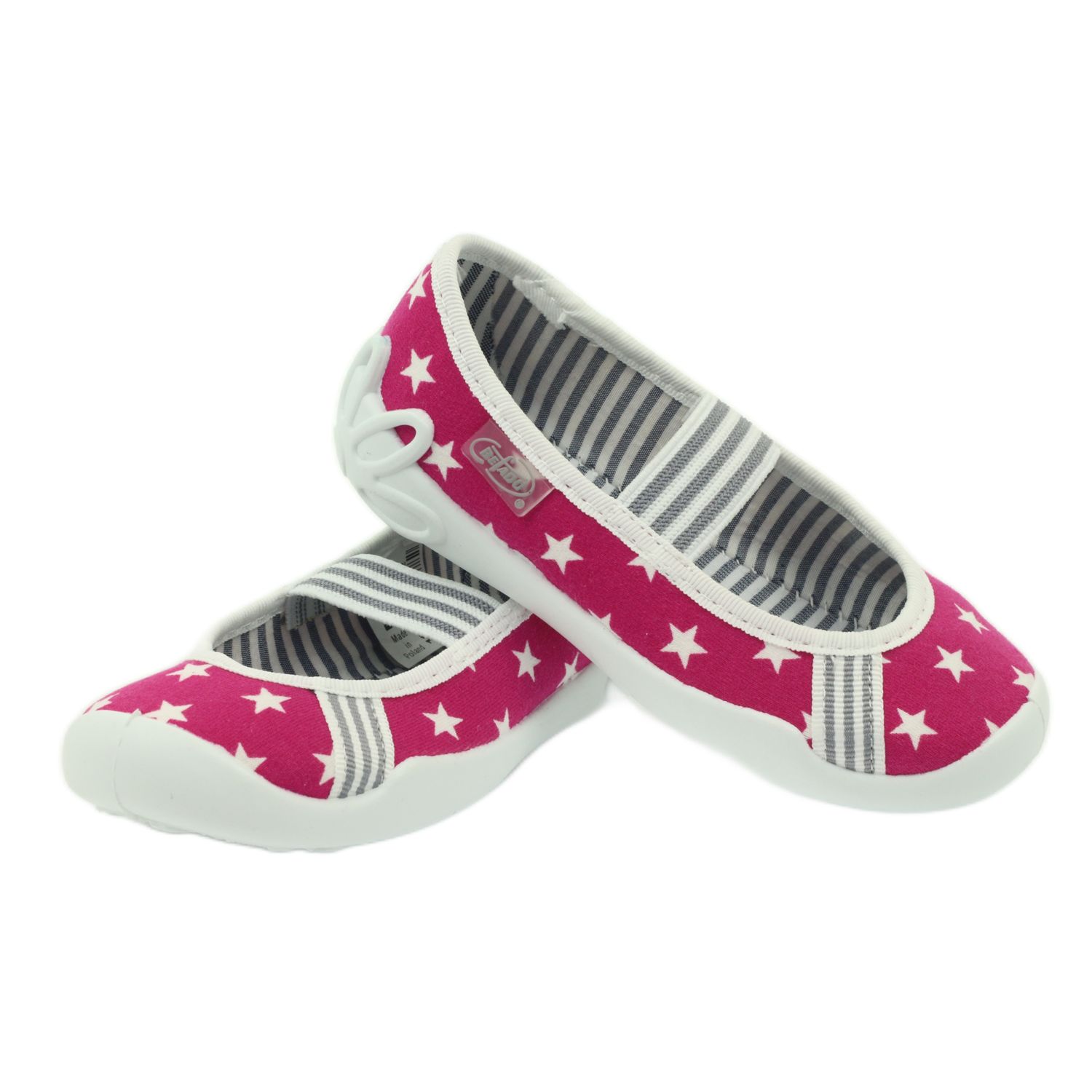 As sapatilhas de bailarina Befado são a escolha perfeita para cada princesinha! O modelo 193x063 na cor branca com estrelas rosa impressiona não só pelo design charmoso, mas também pela funcionalidade. Estas pantufas slip-on, equipadas com elásticos e salto rígido, garantem estabilidade e conforto de uso, eliminando o risco de o pé escorregar para fora do calçado.