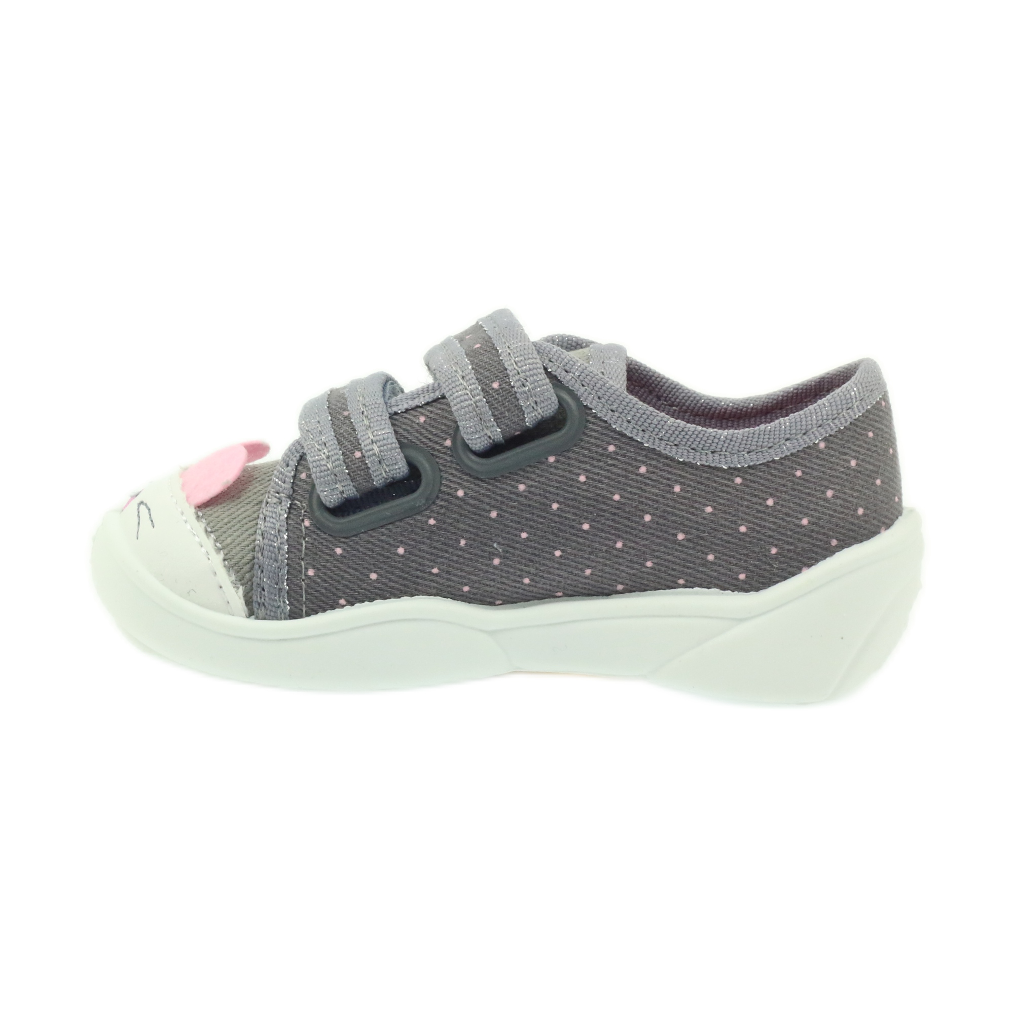 Aqui estão os chinelos perfeitos para a sua princesinha - calçado infantil Befado, chinelos, tênis 907P101, cinza e rosa. Estes charmosos tênis são perfeitos para o jardim de infância, em casa e no quintal, combinando design moderno e funcionalidade.