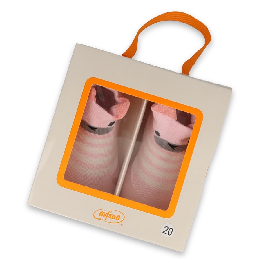 - Design: Motivo fofo e animal na meia - Uma decoração adicional em cores rosa.