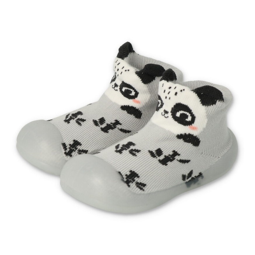 Os andadores infantis distinguem-se por uma meia flexível e uma sola antiderrapante que protegem eficazmente os pés da criança sem sobrecarregá-los ou pressioná-los. O formato do calçado faz com que ele se adapte facilmente ao pé, garantindo estabilidade e conforto durante os movimentos, e o design especial evita que o calçado com meia escorregue.