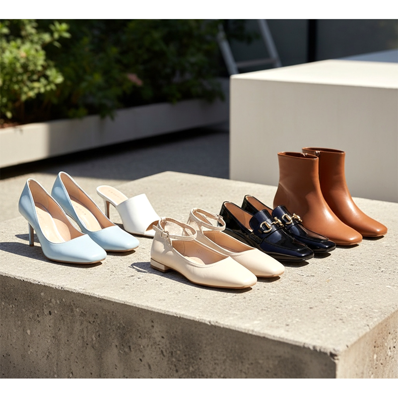 A biqueira quadrada tornou-se presente em praticamente todas as categorias de calçados femininos em 2026. Pode ser encontrada com mais frequência em: