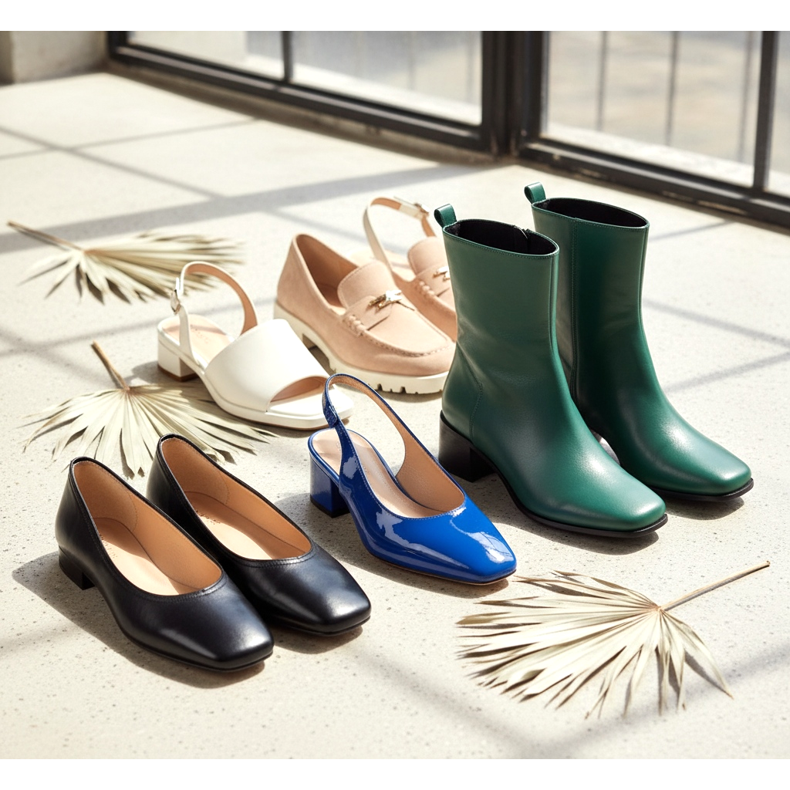 As melhores cores e materiais de sapatos com bico quadrado para 2026