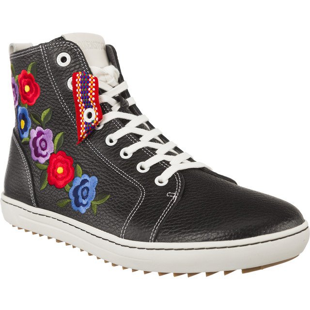 Procura um calçado que combine um look clássico com o conforto da Birkenstock? O modelo Bartlett é uma bota de cano alto com cadarço feita de couro natural maciço na cor preta elegante. Bordados florais sutis na lateral da parte superior acrescentam um caráter feminino, e a sola e os atacadores brancos contrastantes enfatizam o estilo moderno.