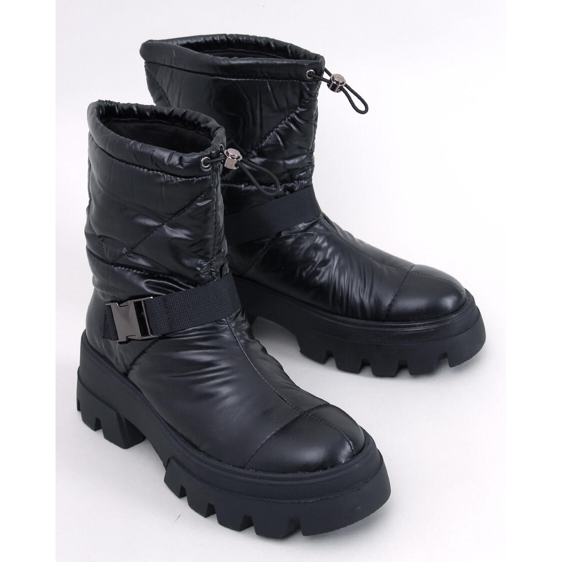 Botas de mulheres modernas e práticas feitas de tecido de orthalion, que são perfeitas para o clima chuvoso e úmido. O corte característico e elegante incorporado em uma plataforma enorme (aprox. 4 cm) com um salto (cerca de 6 cm) dá estabilidade e adiciona alguns centímetros sem desistir de conveniência. A estrutura escorregada e um nariz redondo garantem o conforto de uso todos os dias.