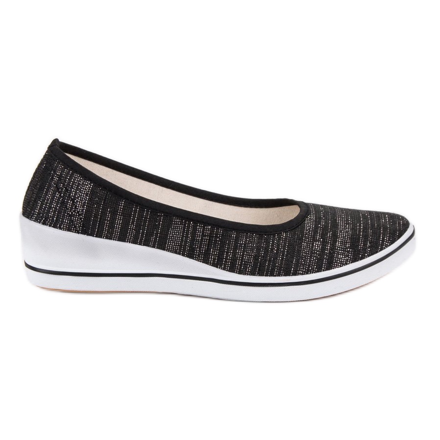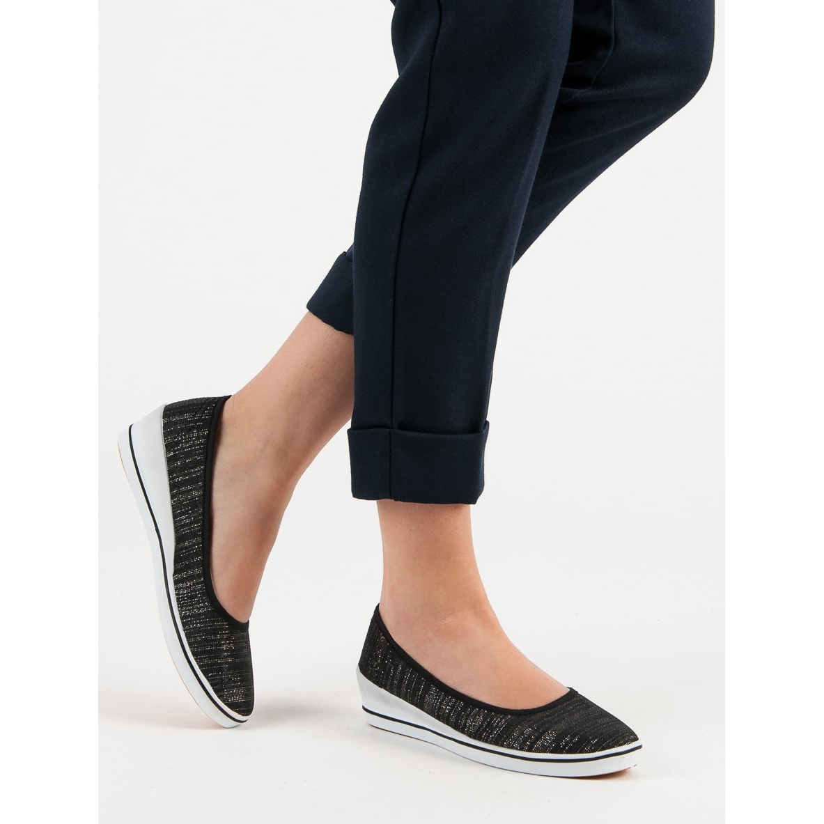As Bailarinas Black Wedge da marca Comer são a escolha perfeita para mulheres que valorizam conforto e elegância no dia a dia. Estes sapatos clássicos slip-on apresentam bico redondo e fecho macio e rígido que garante conforto mesmo quando usado por longos períodos de tempo. Confeccionadas em um tecido trançado agradável ao toque, as bailarinas brilham levemente com o cinza, conferindo-lhes um charme sutil.