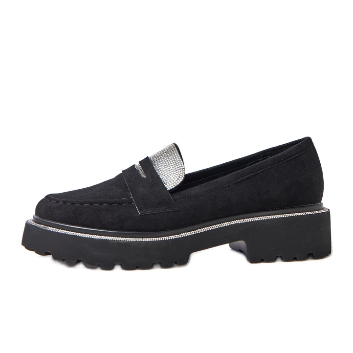 Black Ekozamszu Sopross decorados com zircões cúbicos são uma ótima opção para mulheres que desejam combinar elegância com conforto. Feito de pele de camurça ecológica de alta qualidade, esses mocassins não são apenas estéticos, mas também fáceis de cuidar. Os strasss da estilância lhes dão estilo, tornando -os perfeitos para diariamente e para ocasiões mais formais.