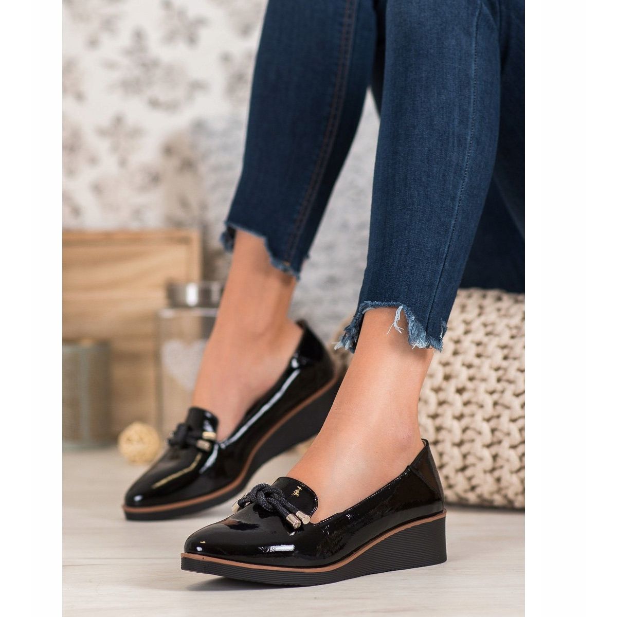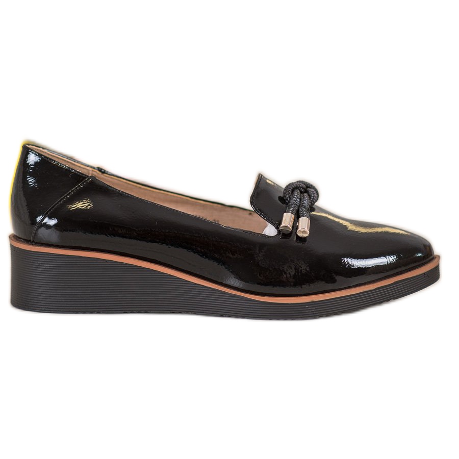 As Cunhas Black Lords VINCEZA são a escolha perfeita para mulheres que procuram uma combinação de elegância e conforto no dia a dia. Feitos de materiais de alta qualidade, estes sapatos estilosos apresentam uma superfície laqueada que reflete lindamente a luz, conferindo a qualquer roupa um caráter luxuoso.