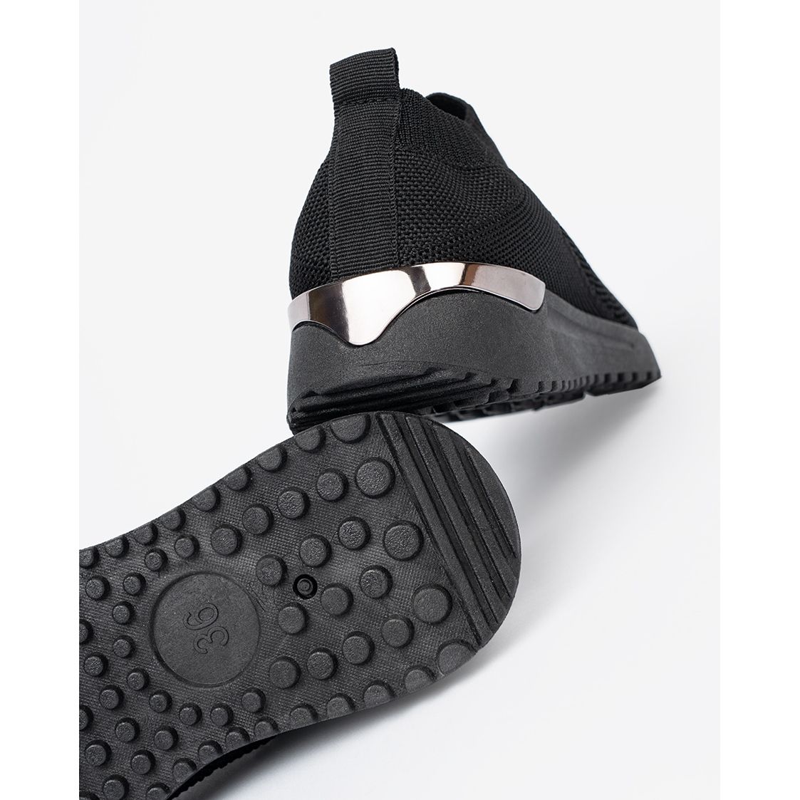 Detalhes: Shelvt Black Slip-On Sports Shoes com uma parte superior de malha preto