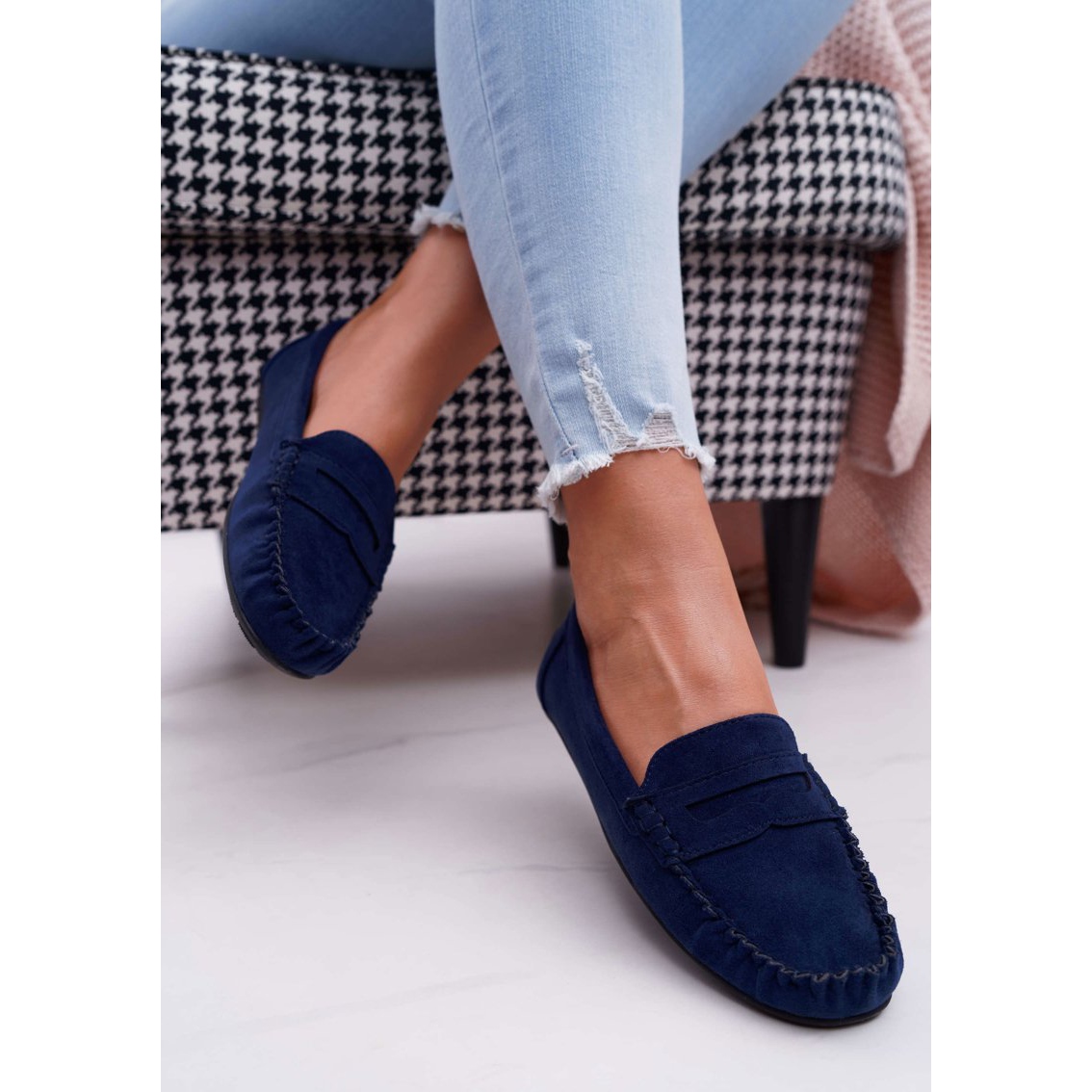Detalhes: SEA Bolero de camurça azul marinho mocassins feminino azul-marinho