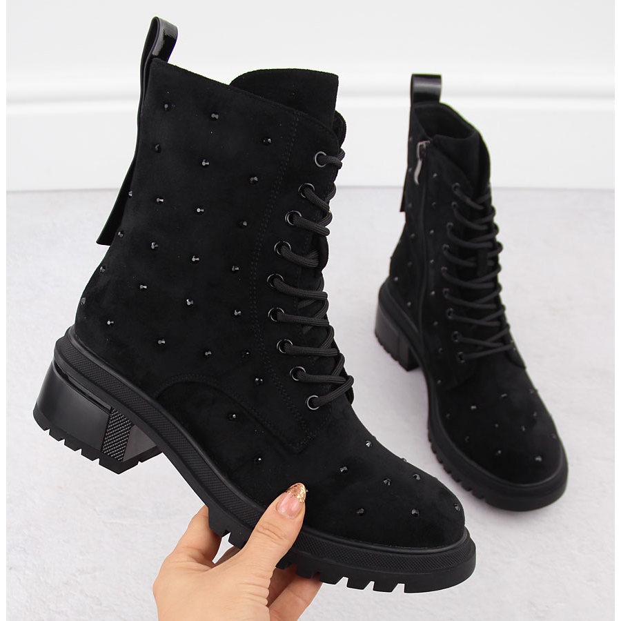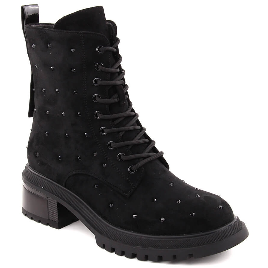 Feitos de couro natural de alta qualidade, os trabalhadores são distinguidos por um brilho sutil e decorações interessantes na forma de zircões, que lhes dão brilho e caráter único. Isolados com agradáveis com o pêlo de toque, eles proporcionam conforto mesmo em dias mais frios.