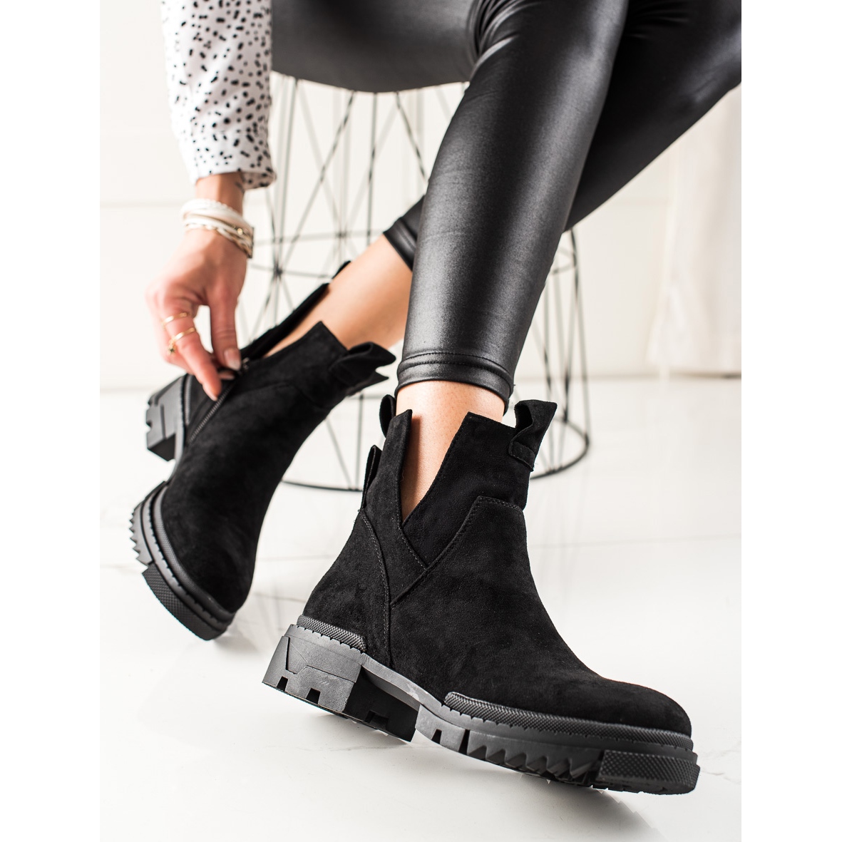 Descubra conforto e elegância excepcionais graças às botas de trabalho em camurça preta com recorte do fabricante W. Potocki. Estes elegantes botins femininos são uma proposta perfeita para o dia a dia que se adapta ao seu estilo casual, perfeitos tanto para o estilo urbano como para o dia a dia.