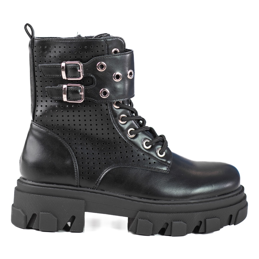Descubra elegância e conforto com trabalhadores femininos abertos na plataforma Shelovet. Estes botins pretos são uma opção perfeita para os dias mais frios, combinando o estilo casual com o rock. Graças à utilização de materiais ecológicos de alta qualidade, estes sapatos não são apenas atraentes, mas também ecológicos.