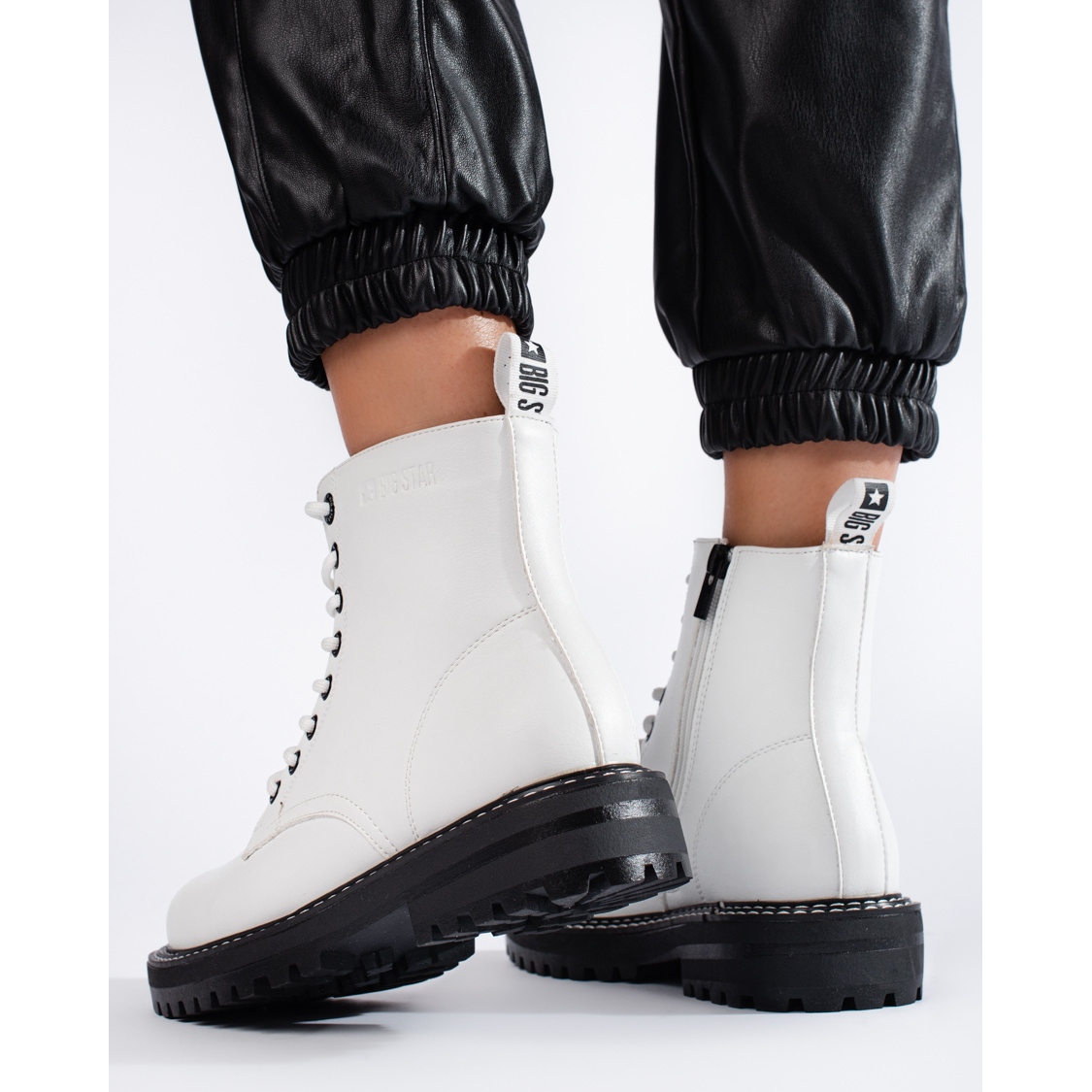 Os trabalhadores modernos, confortáveis e elegantes - White Big Star KK274539 são uma proposta para mulheres que valorizam uma aparência casual e levemente de pedra e conforto todos os dias. Feito de couro orgânico, interior isolado e uma sola sólida e recaptida, os fazem funcionar perfeitamente na temporada de outono/inverno.