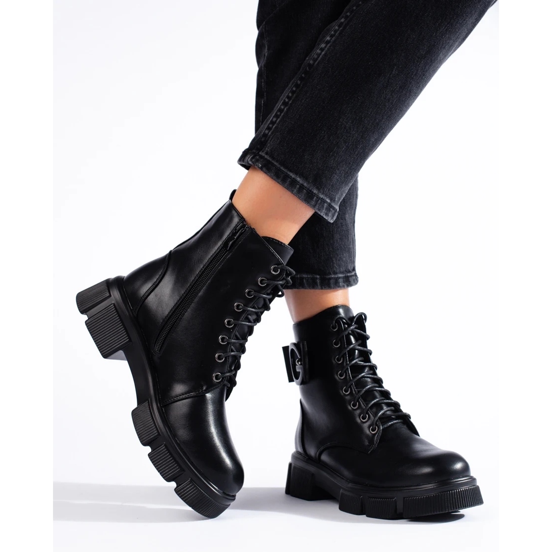 Trabalhadores clássicos das mulheres negras feitas de couro ecológico de alta qualidade. O modelo que combina um caráter casual e rock, ideal para a temporada de outono/inverno - isolado, confortável e estável, funcionará tanto para estilizações diárias quanto mais predatória.