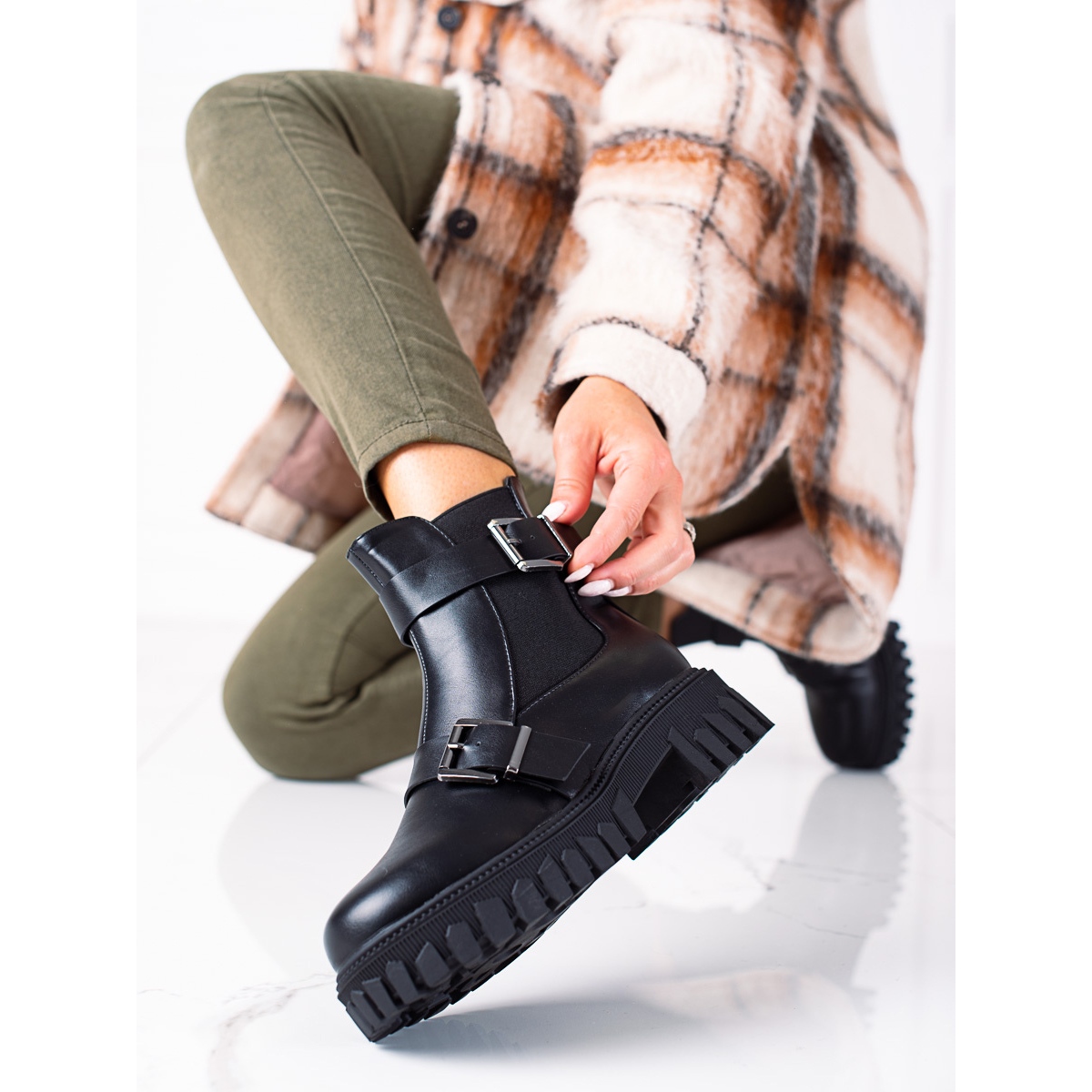 As botas pretas Goodin com fivelas são a escolha perfeita para mulheres que valorizam estilo e conforto no dia a dia. Estas botas combinam um ambiente rock com um acabamento casual, o que as torna perfeitas para vários estilos para o outono/inverno.