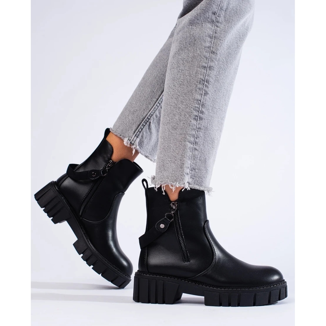 Trabalhadores das mulheres negras com um ornamento - isolado, prático e elegante. Perfeito todos os dias na estação do outono -inverno: uma cunha estável de 5 cm, uma sola adesiva com um piso e um revestimento têxtil macio e têxtil garantem conforto, mesmo em baixas temperaturas.