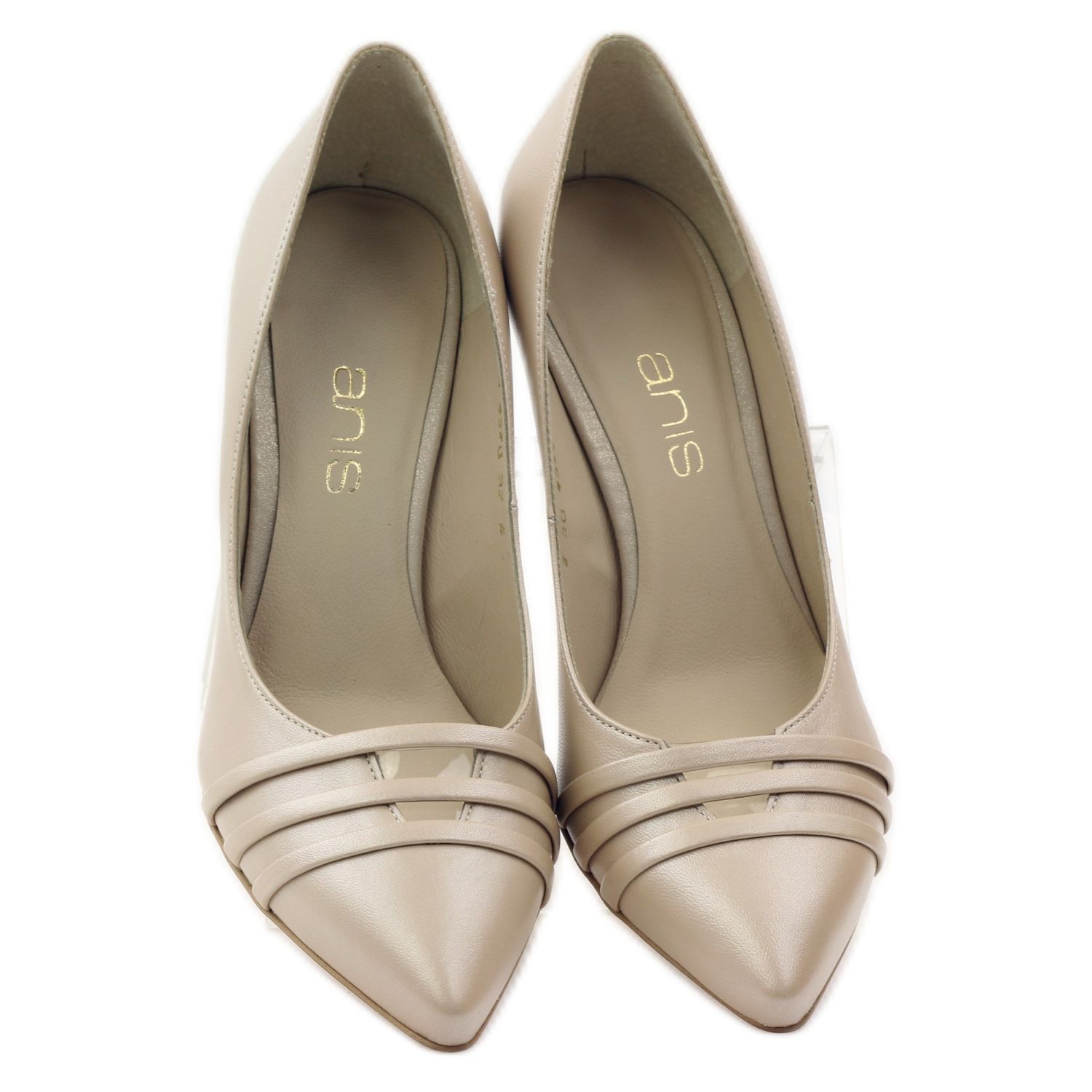 Os scarpins bege pérola Anis 4570 são um modelo único que combina elegância e conforto. Confeccionados em couro natural cuidadosamente selecionado, chamam a atenção com um interessante design superior e um tom de bege sutilmente perolado.
