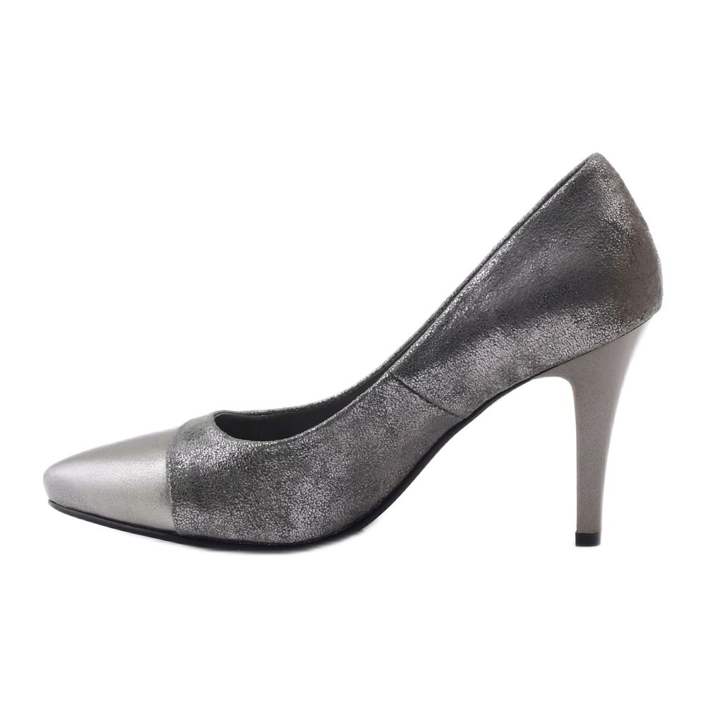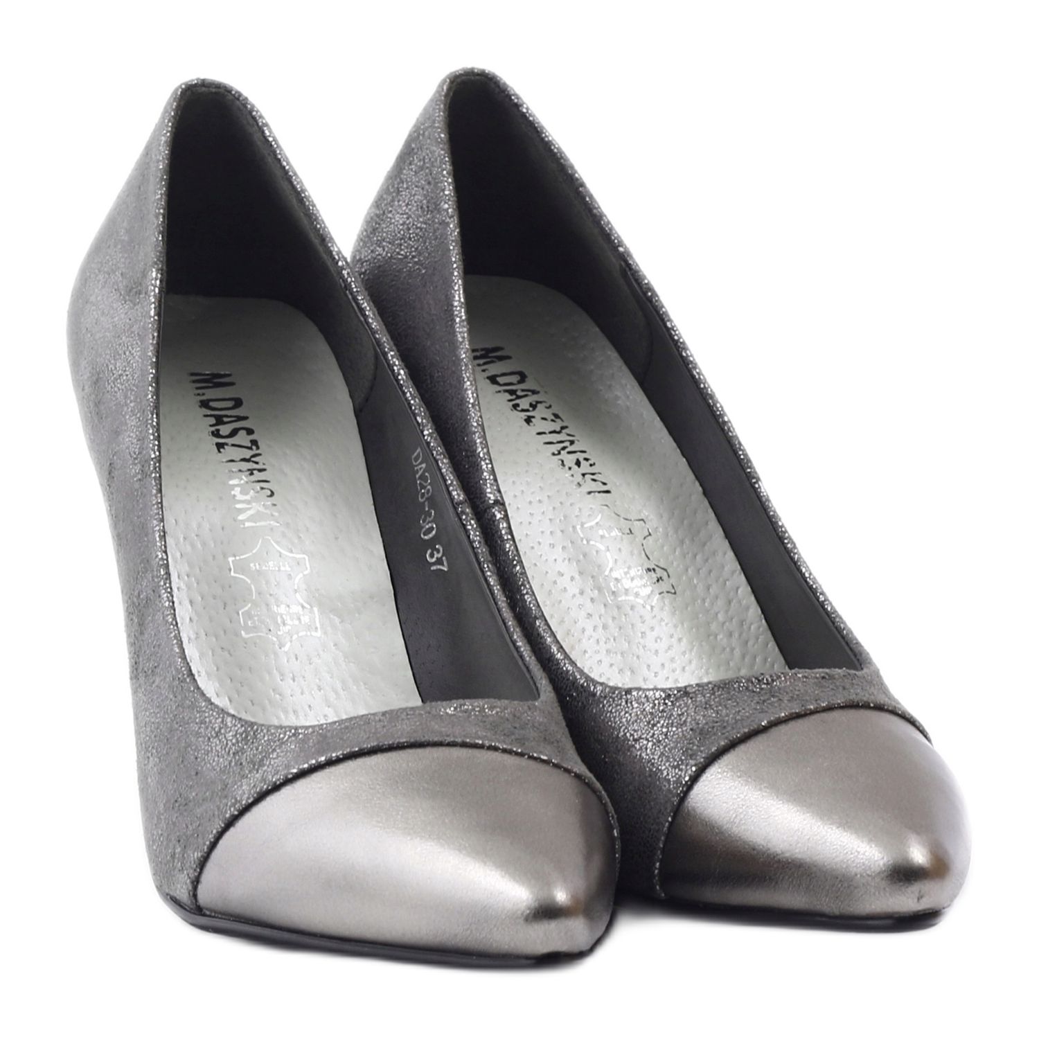Os sapatos brilhantes M.Daszyński DA28 são uma escolha elegante para mulheres que desejam combinar conforto com um visual moderno. Oferecidos em um tom cinza que brilha sutilmente com prata, esses sapatos elegantes certamente chamarão a atenção. A ponta prateada confere-lhes um caráter único, tornando-os um complemento perfeito para estilos do dia a dia e da noite.