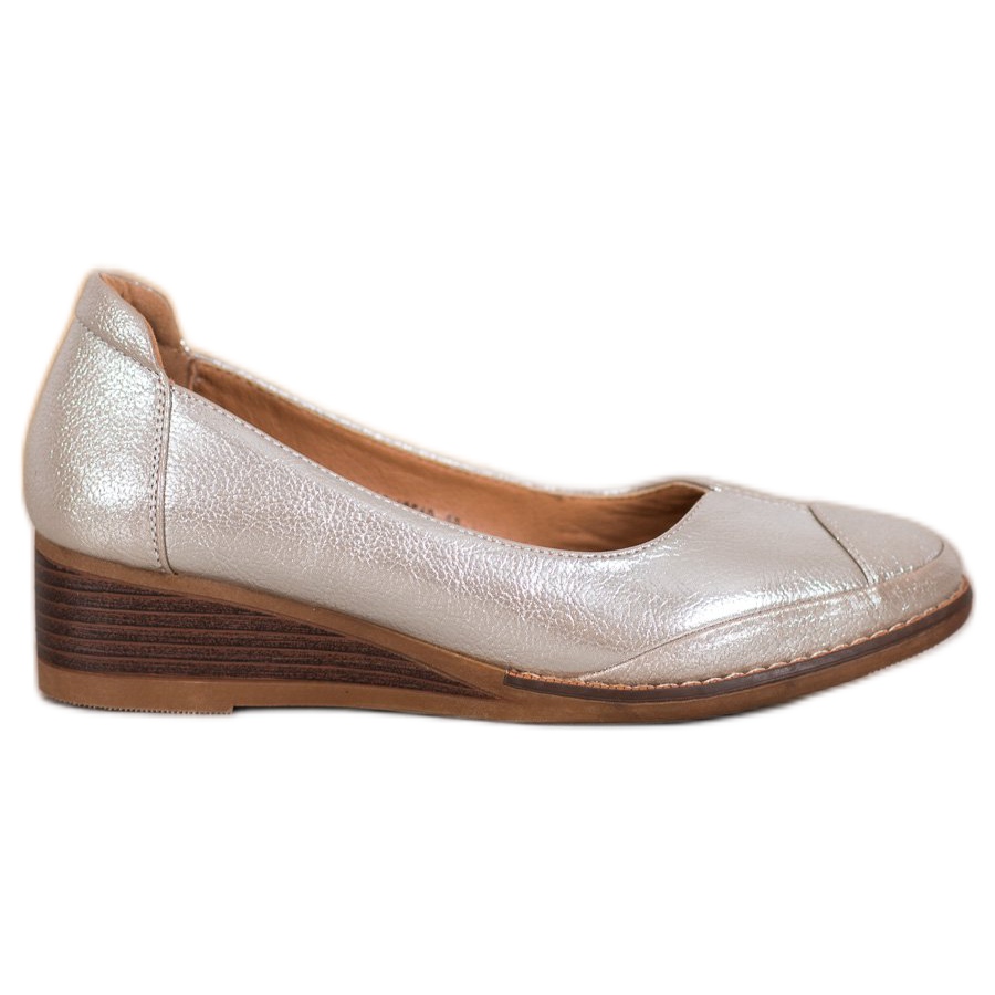Descubra elegância e conforto com os sapatos de cunha dourada da Vinceza. Estes sapatos estilosos, feitos de material estético semelhante ao couro, são o complemento perfeito para muitos looks de primavera e verão. O seu acabamento metálico brilhante fará com que se sinta especial em qualquer ocasião.