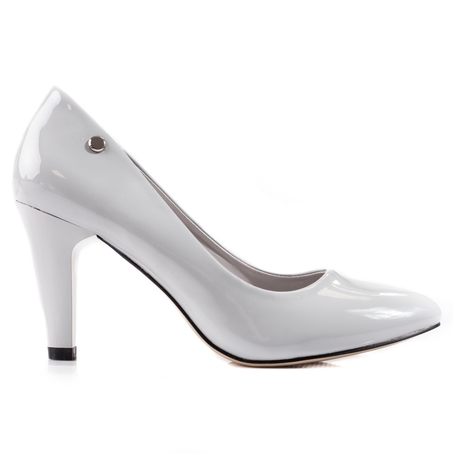 As bombas elegantes de Goodin em uma cor cinza da moda combinam um corte clássico com o conforto diário. O couro ecológico pintado fornece o estilo dos sapatos e um salto estável do pistão de 8,5 cm de altura alonga sutilmente a figura, se checando diariamente e durante as celebrações ou passeios noturnos.