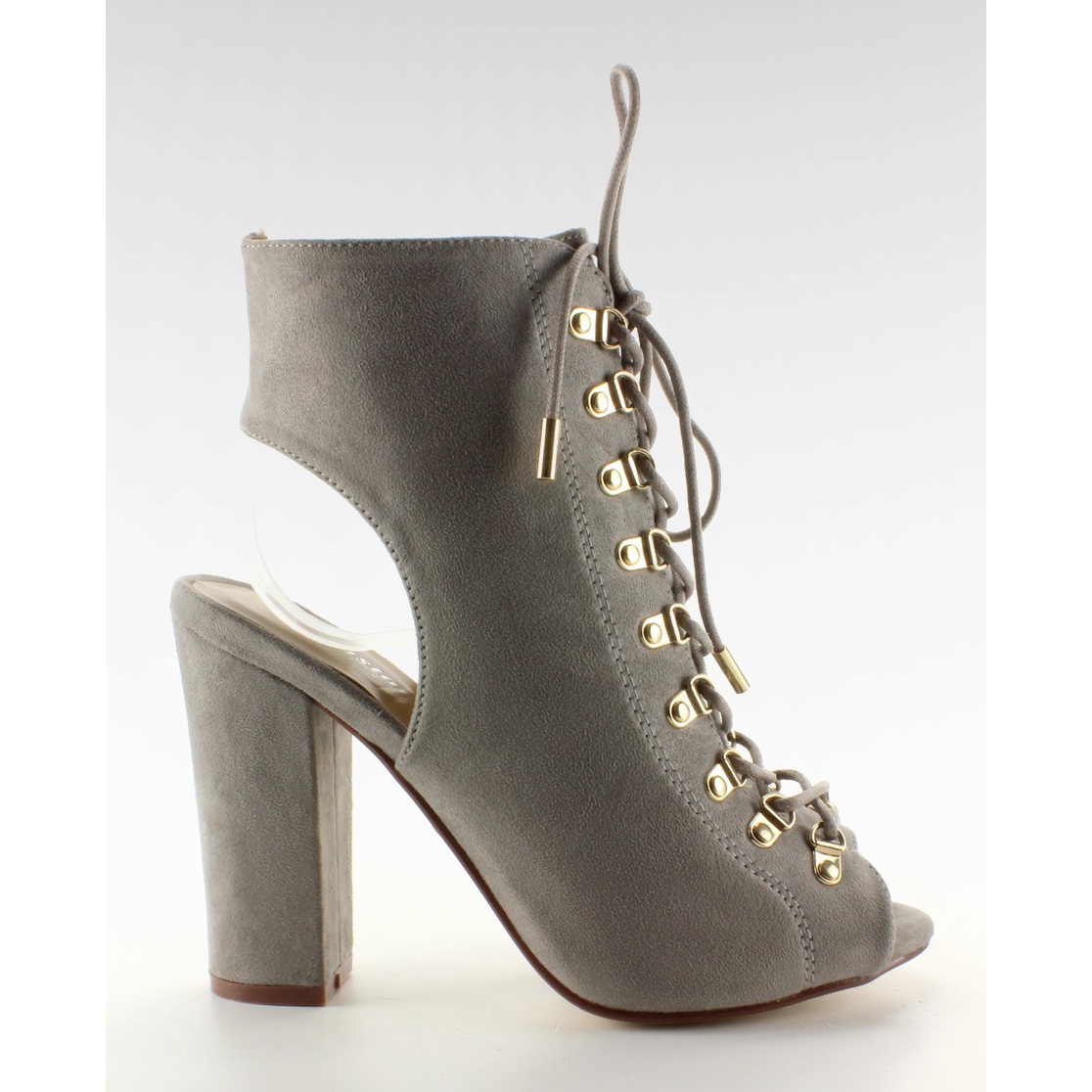 JZ-11P Sapatos cinza com cadarço e bico aberto - cinza, salto largo 11 cm