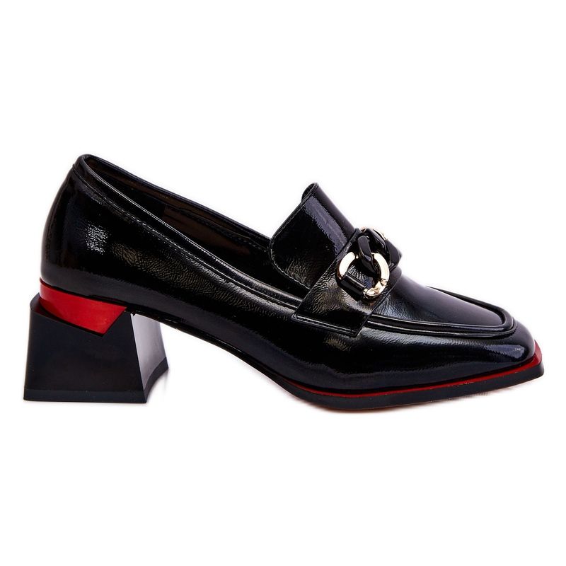 Bombas elegantes e confortáveis com um corte universal e atemporal - ideal para o escritório e saídas. O modelo "Valenti" combina uma forma clássica com um acabamento moderno e envernizado e uma decoração sutil na forma de uma corrente plástica. Um salto baixo e estável do bloco e uma inserção suave do couro natural garantem conforto ao longo do dia, e o salto rígido estabiliza o pé ao caminhar.