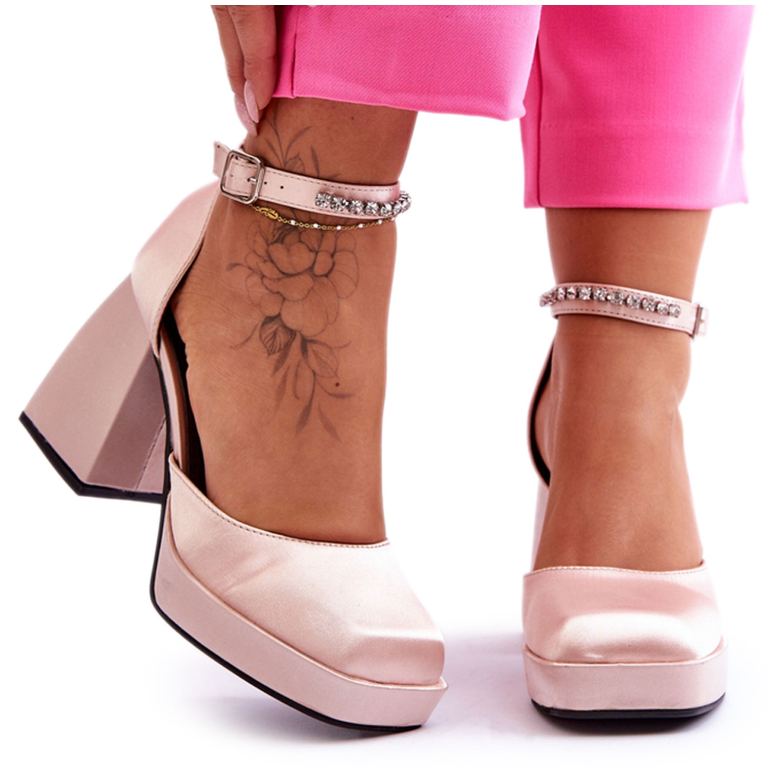 Detalhes: Bombas da moda em saltos maciços com zircões bege Adel