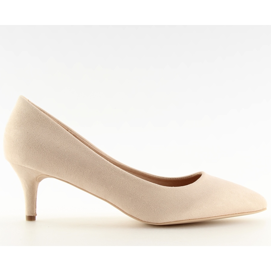 As elegantes bombas femininas feitas de camurça ecológica. O modelo é distinguido por um corte esbelto com um nariz delicado em um spitz leve - uma forma atemporal que funcionará para o escritório e para ocasiões especiais. O salto baixo e estável com uma altura de 6 cm oferece conforto com um uso mais longo, enquanto emagrece a figura. A cor bege é universal e fácil de combinar com estilos diferentes.