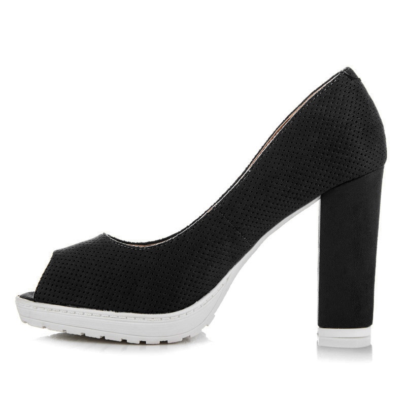 Detalhes: Vices Bombas de camurça aberta preto