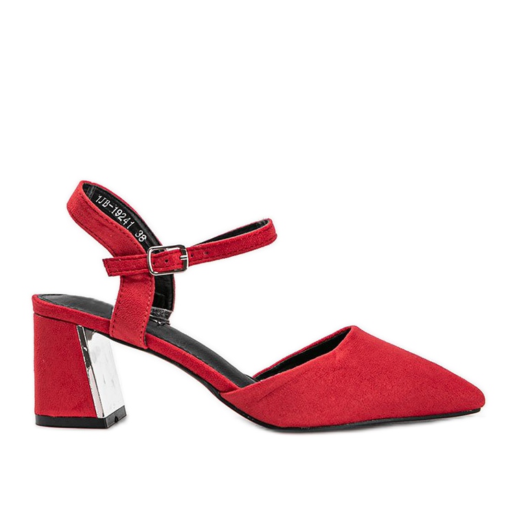 Detalhes: Bombas de camurça ecológica vermelha no bloco Anita vermelho
