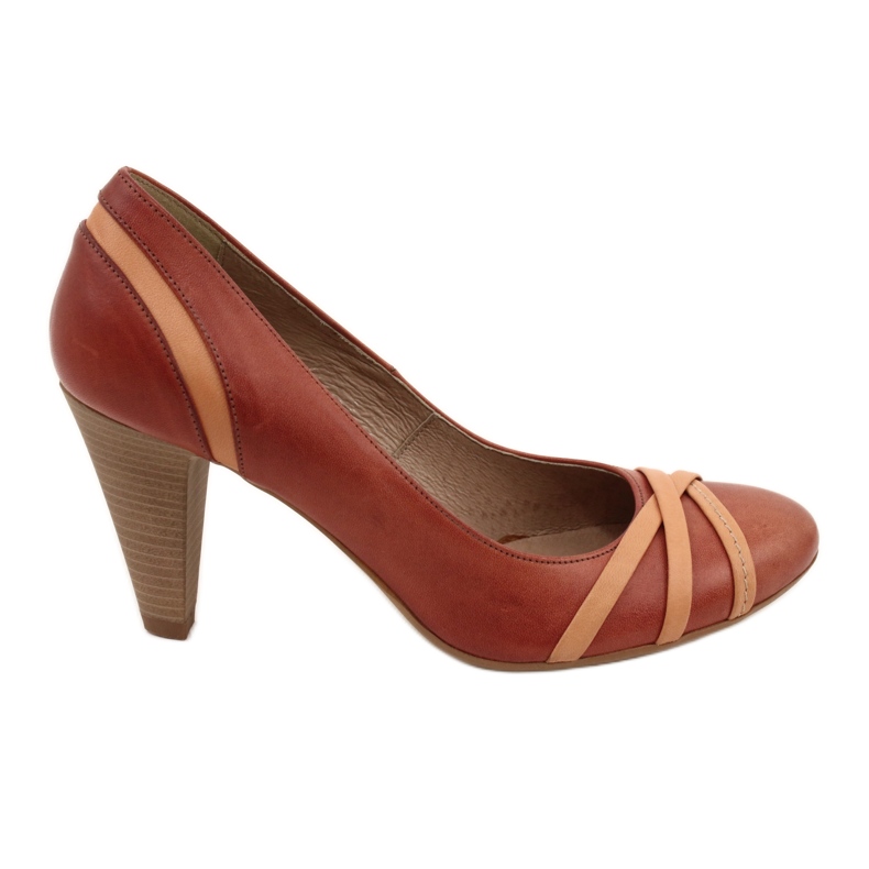 Detalhes: Bombas de couro feminino 1392 marrom decorado com listras de edeo