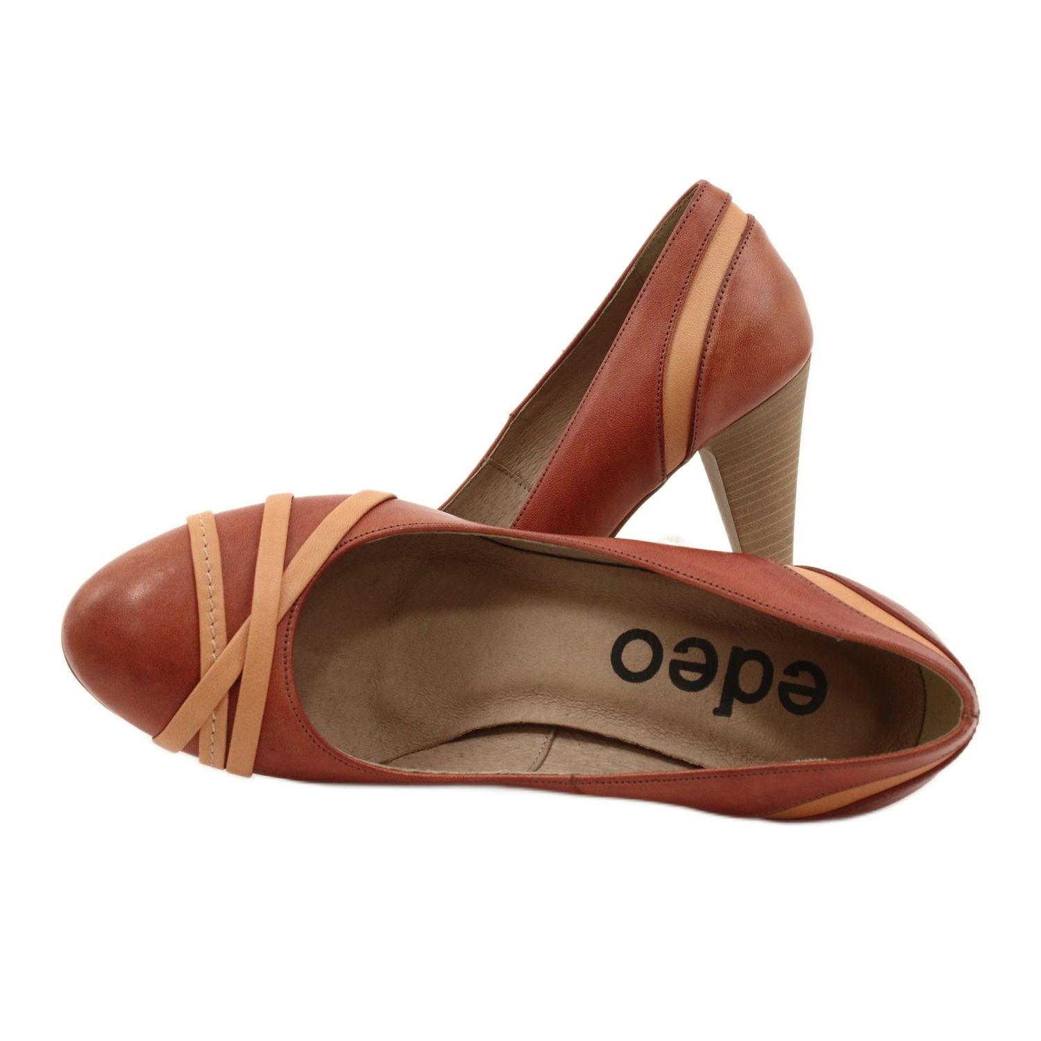 Edeo Bombas de couro feminino 1392 marrom decorado com listras de edeo castanho