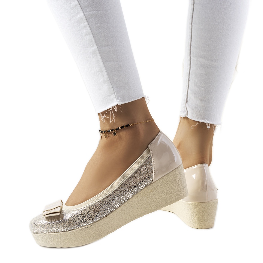 Detalhes: Bombas de cunha Golden Corker bege dourado