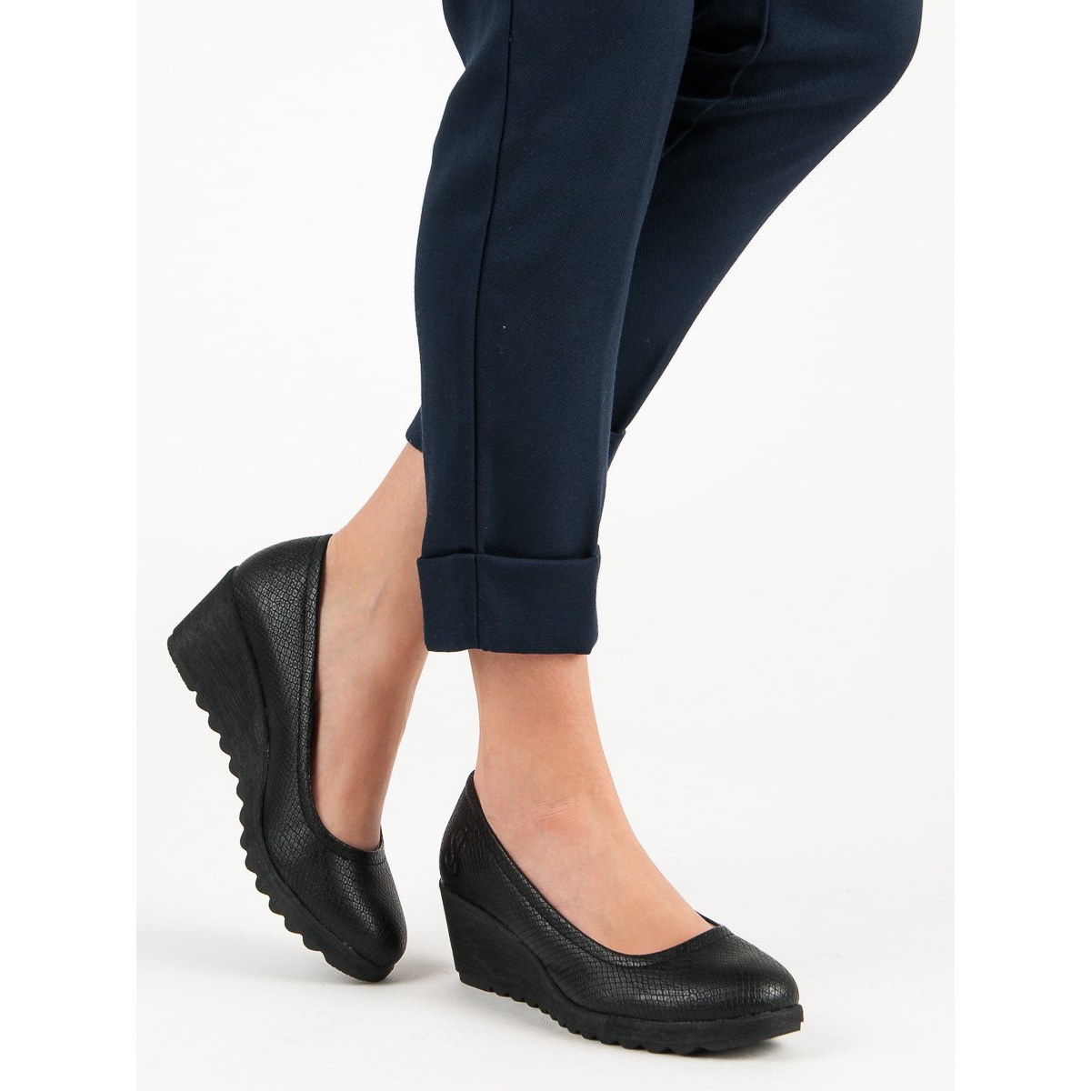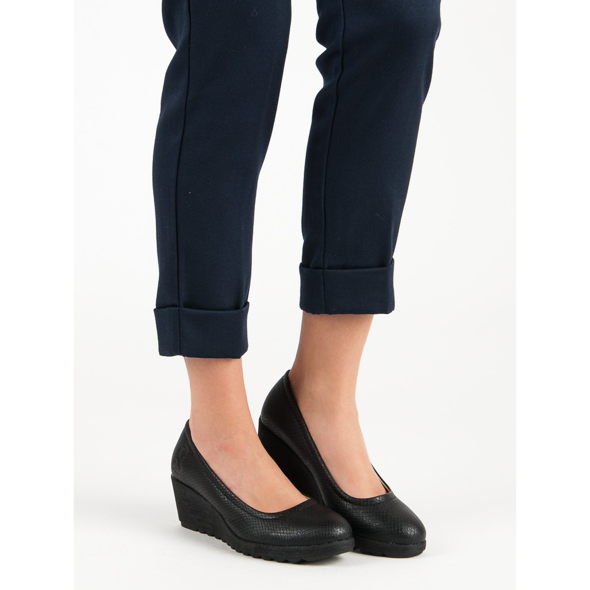 Os sapatos de cunha Black J. Star são obrigatórios para todas as mulheres que valorizam conforto e estilo. Estes sapatos casuais, perfeitos para a primavera e o verão, enfatizam perfeitamente a figura e o formato das pernas, ao mesmo tempo que acrescentam a altura certa. Confeccionados em couro ecológico de alta qualidade, combinam perfeitamente elegância e praticidade.