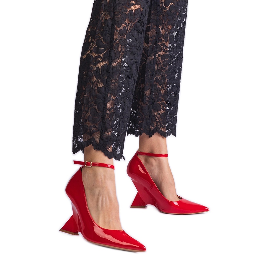 Detalhes: Bombas de cunha patenteadas vermelhas vermelho